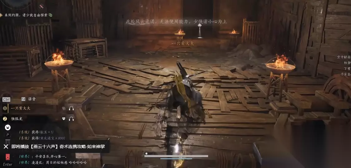 关键注意事项 操作技巧:下落时全程用千斤坠或钩索辅助,避免高空坠落导致重伤或装备损耗;钩索触发需及时按对应按键(G键),避免错过落点。 陷阱规避:副本内存在大量陷阱和易碎木板,优先沿边缘移动,不盲目跳跃未知区域;遇到暗箭陷阱时,可提前使用千斤坠震碎触发装置。 道具利用:提前备好火箭,用于引爆炸药桶解锁宝箱;若火箭数量不足,可在鬼市NPC处购买补充,避免因道具缺失遗漏宝箱。