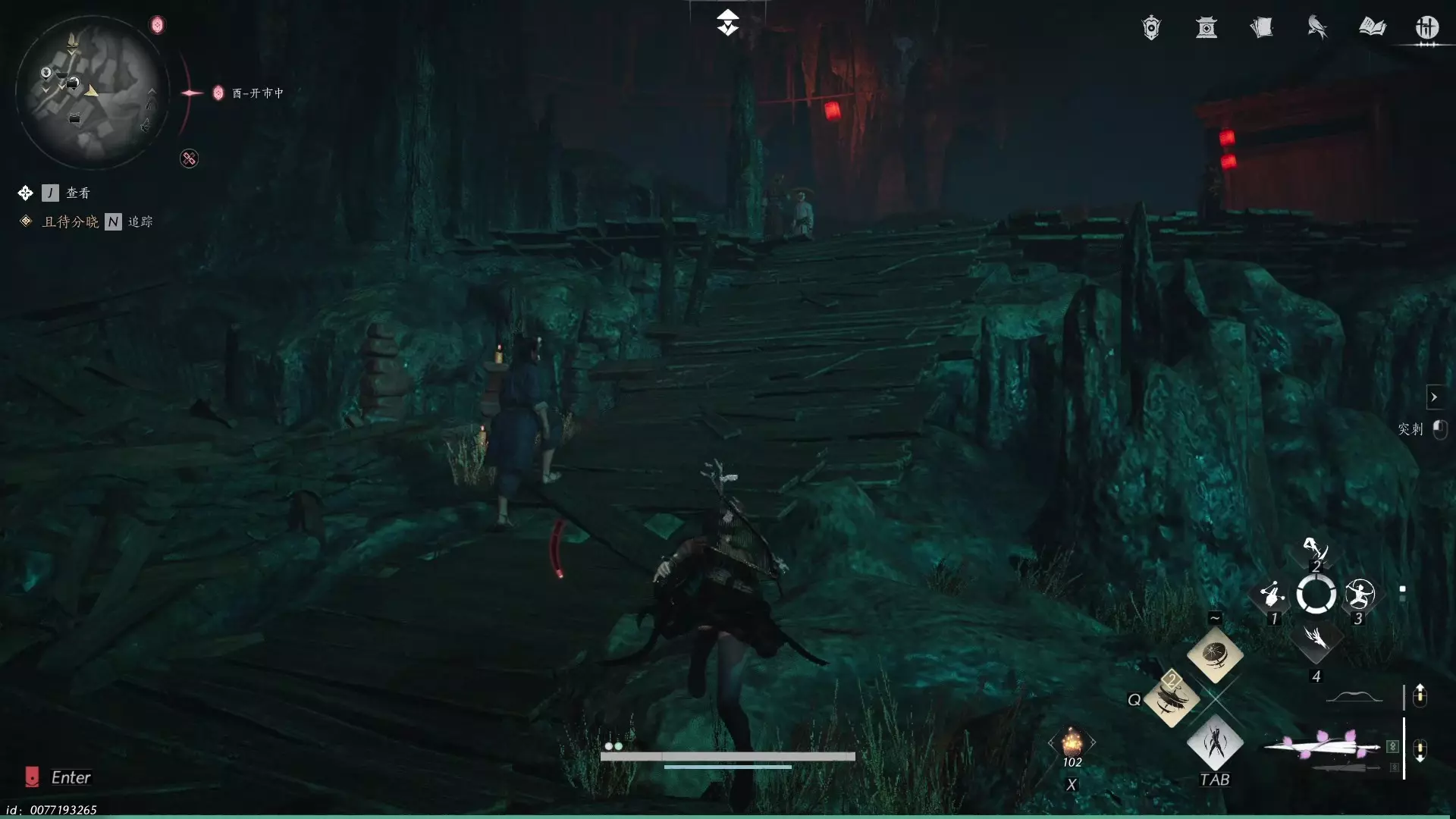 1. 进入鬼市与触发副本 传送至开封城地下的鬼市区域,佩戴面具确保通行无阻,顺着绿色灯笼指引前行。 找到鬼市牌坊左侧的阶梯,跳上屋顶后向红灯笼方向前进,找到地窟入口的机关,扳动后开启副本大门。