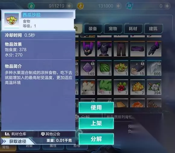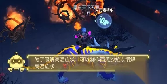 解决饥渴问题后我们还有注重自己的穿衣问题,在某些区域我们可能会遇到寒冷或炎热天气,所以一定要选择保暖或耐热的衣服,否则也会危及到生命。 在炎热区域可以携带【西瓜沙拉】进行耐热