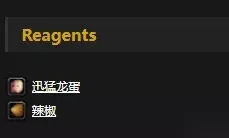 需要素材:迅猛龙蛋x1、辣椒x1 学习等级:烹饪130 学习自:由食谱美味煎蛋卷学习,食谱由在部落荆棘谷(32.7,29.2)和阿拉希高地(74.1,32.7),联盟暴风城(77.5,52.7)处购买。
