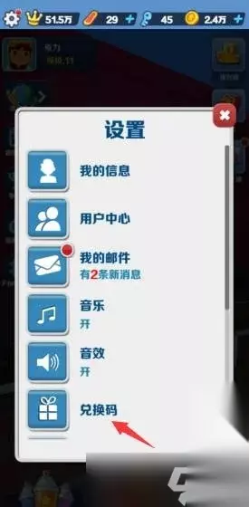 2、然后在设置列表中点击兑换码选项进入。