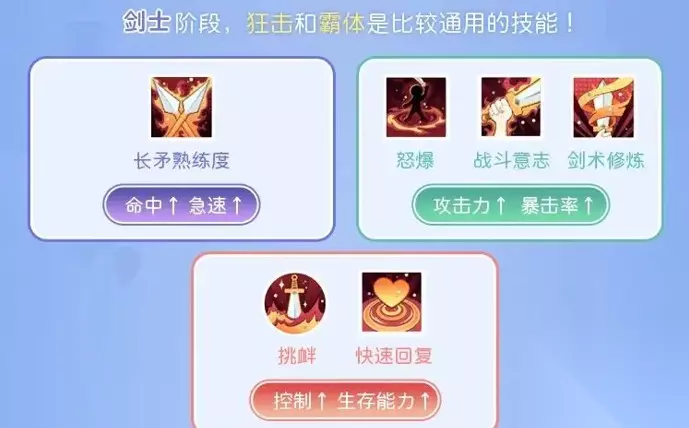 三、技能系统 1、剑士阶段,狂击和霸体是比较通用的技能!