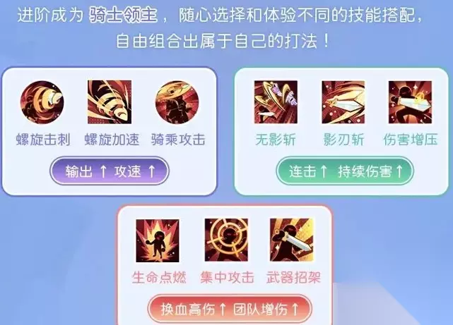 4、进阶成为骑士领主,随心选择和体验不同的技能搭配,自由组合出属于自己的打法!