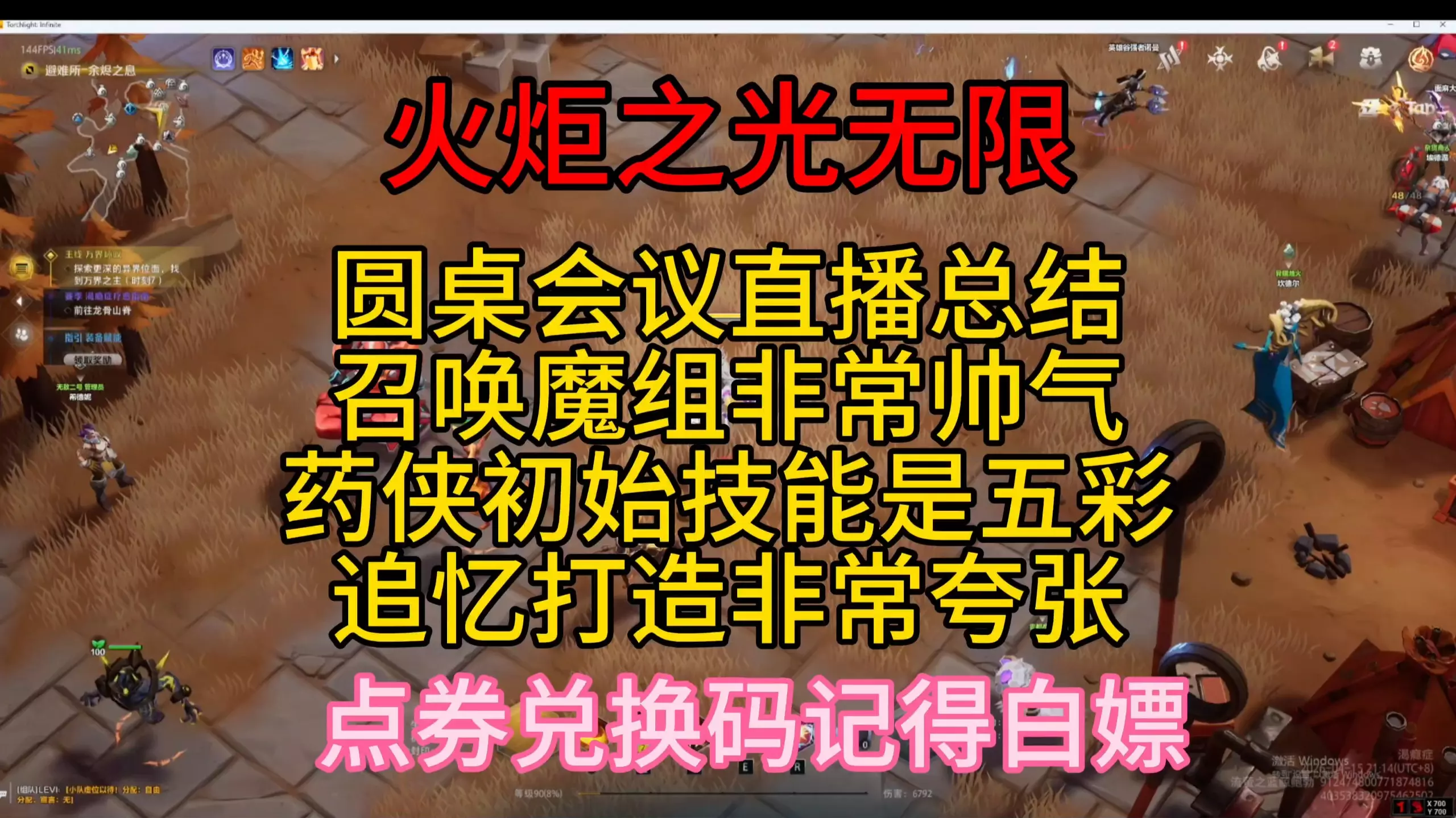 兑换码:TLXIAOQ 火炬之光无限SS12 圆桌发布会内容总结 1. 老孤独1v3暗鸦 2. 还是强调他们听劝,会听玩家的意见 3. 五彩魔矢加强 4. 聊到…