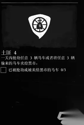 荒野大镖客2土匪挑战4攻略 目标: 一天内抢劫任意3辆马车或者将任意3辆偷来的马车卖给黑市。