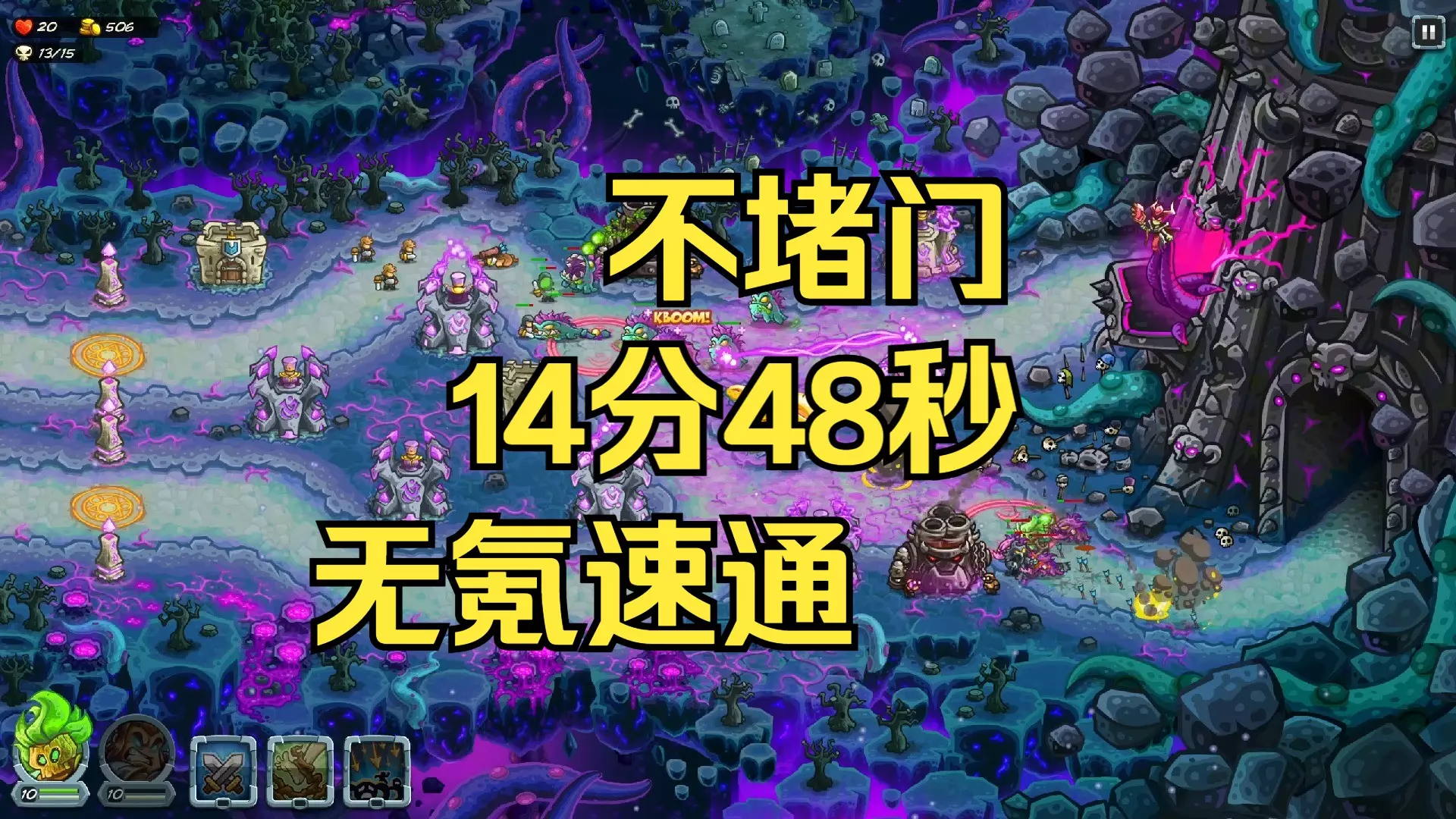 这是一篇《王国保卫战5:联盟》的无氪不可能难度抠门攻略,由塔防新手分享,附带4K60帧内容,展示了游戏地图与英雄配置界面,为玩家提供该高难度模式的无氪通关思路。