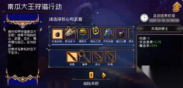 首先是玩法“南瓜大王狩猎行动”,进入其中大家可选择不同的核心与武器,每个武器攻击方式不同,核心也有着不一样属性和特殊效果,大家可自由搭配,迎战一波又一波的敌人,若成功在关卡中打败敌人会掉落出灵魂币,拾取它能获得经验,经验满了后就可以选择绿、蓝、紫、红等不同品质的芯片装备到武器上来提升强度。