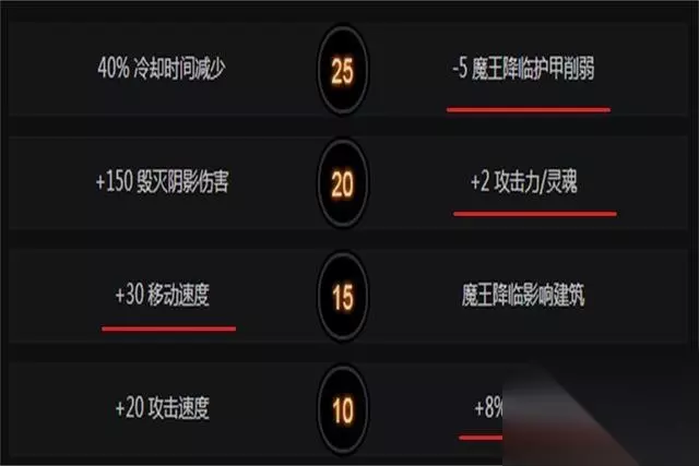 影魔的天赋选择大致分为两种不同的思路,一种是比较热门的物理输出路线,另一种则是技能爆发流,技能爆发流的作为就是只用技能去打伤害,这个比较吃技能的伤害。10级天赋点右边+百分之8技能增强,两种路线都适应。15级天赋点+30移动速度,影魔这个英雄没有什么位移技能,而多数情况下还是依赖普攻和控制距离去打技能伤害,有移速才有空间利用走位去放对手的风筝。 20级天赋路线开始产生规划了,玩普攻的点右边的加2攻击力灵魂。玩技能输出的点右边加150毁灭阴影伤害。25级最后一层天赋,也是差不多同理。 装备搭配