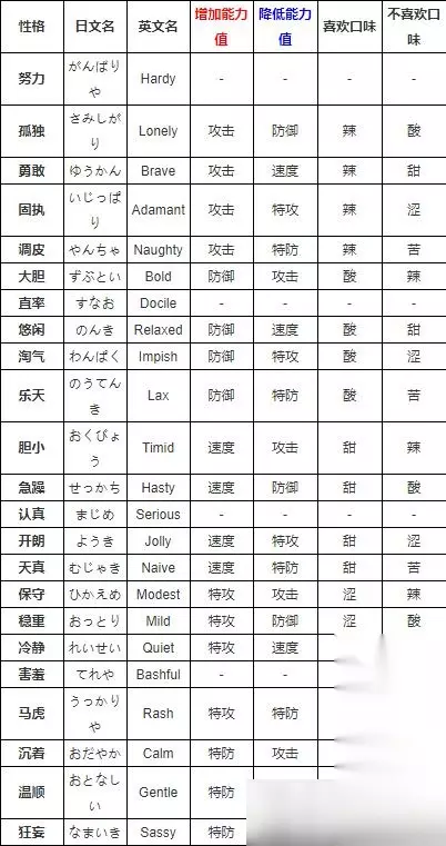 以上就是口袋妖怪性格表的全部内容,玩家可以在这里找到很多有趣的性格以及属性可以参考。