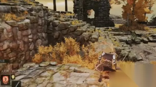 16、走出大门后,要迅速去击杀右下方的“粪金龟”,最好要使用“飞刀”类的远程武器,攻击它,这样就可以轻松将其击杀。获得“战灰·突进冲击”