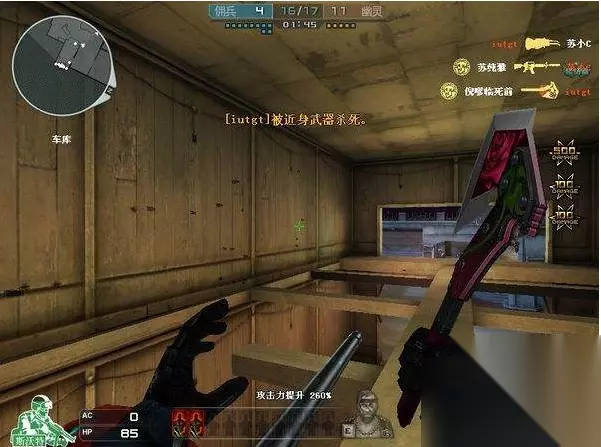 在生化模式中各位CFer都喜欢使用枪械来击杀僵尸,但是近战武器其实也在生化模式中可以造成极高的伤害。一把近战武器进入僵尸群,不断的躲避僵尸的攻击四处游走,几次之后你就会发现你的身边已经躺下了一地僵尸。不过这样的操作需要极高的身法,跳,反跳,落刀等一样也不能少,不然就不是戏僵尸而是送死了。 战场模式的轻炮兵