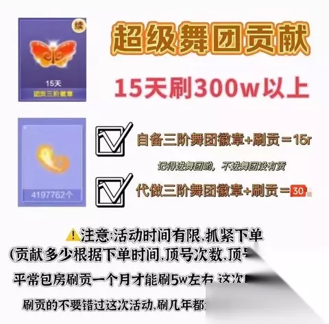 最基础的每日签到千万别忘这个真的是最简单的白嫖方式了,每天上线第一件事就是去舞团签到,轻轻松松80点贡献到手。我有个朋友就是老忘记签到,结果贡献度一直上不去,团长都快把他踢出群了。记住啊,这个真的是最基本的,连签到都做不到的话就别想着冲贡献榜了。