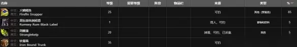 包含:火鳞鳝鱼、黑标美味朗姆酒、荆棘藻、铁箍箱