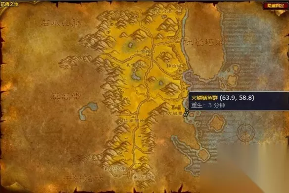 4、贫瘠之地:【北方城堡】的右侧坐标(64.3,57.8)处可找到;
