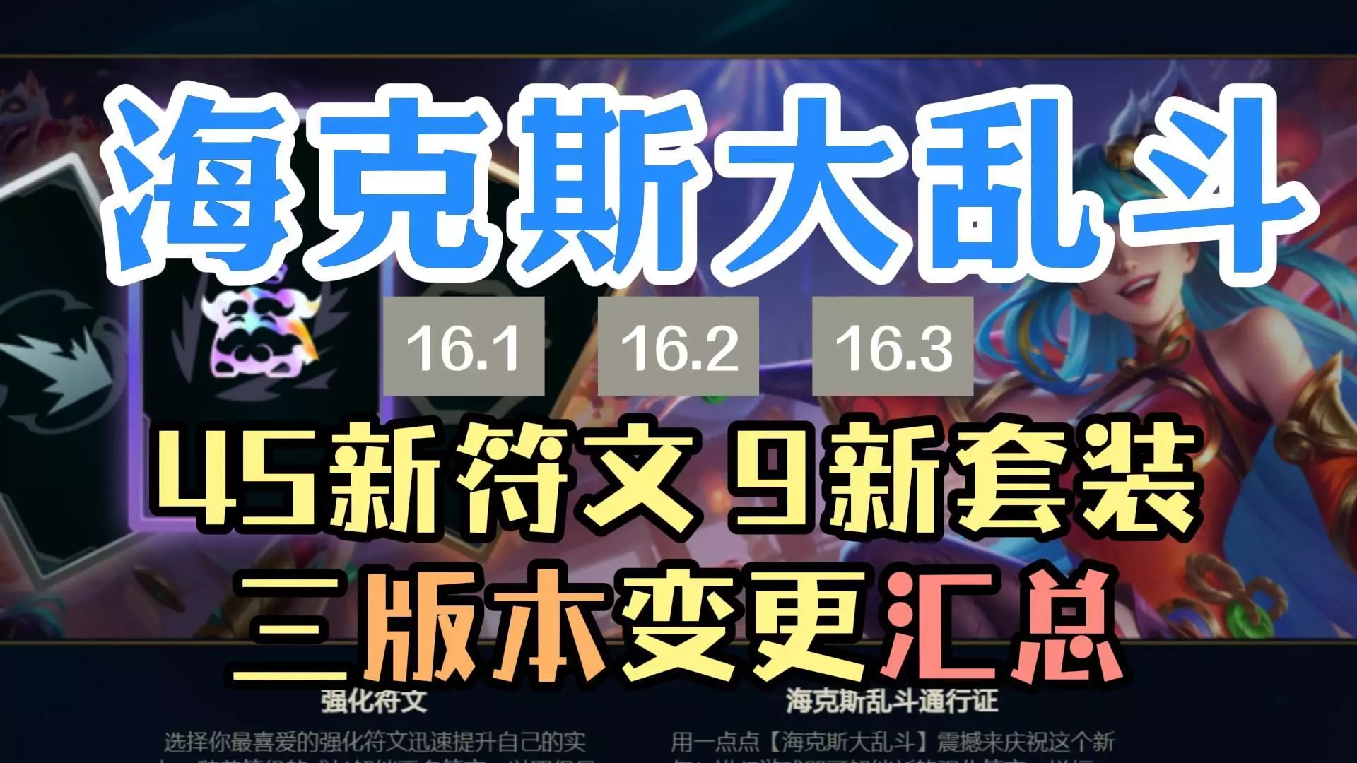 英雄联盟海克斯大乱斗16.3重大改动全部介绍。 包括45张新增海克斯,9套套装,1个免费通行证。 以及16.1和16.2的强化符文改动一览。 卧室喜欢用原图介绍…