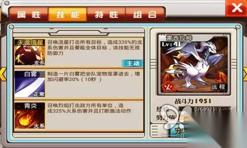 【白神-雷希拉姆】 雷希拉姆是龙系和炎系的传说中的小精灵。特性涡轮高温,在使用技能时不受目标特性影响。在游戏中,雷希拉姆的技能为天龙流行:对所有目标造成335%龙系伤害并且眩晕,技能无视防御;白雾:白雾把全队笼罩,增加闪避了20%(10秒);青炎:对所有目标造成325%火系伤害并且打断施放。