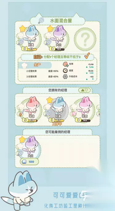 将模拟经营农场以及双人体验的玩法巧妙结合起来,在闲着无聊时,您可以和另一半共同体验,双方要扮演不同的角色,一方要努力建设农场,而另一方要保护农场。在偌大的农场世界当中,也会有很多怪物虎视眈眈,总是想入侵农场并破坏农场,因此玩家面对怪物入侵时,必须要与之抗衡,核心的玩法就是要双方共同协作才能还原农场的宁静。 高速下载 普通下载 优先233乐园APP下载 4、《喵咪工坊》