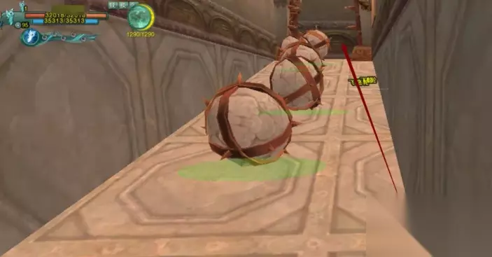 6、一跳下来就能看见旁边的巨石阵了,得从巨石阵穿过去,靠边走,一个聂云就过了,就算被石头砸到也没有关系,因为伤害很低。