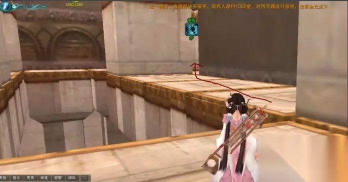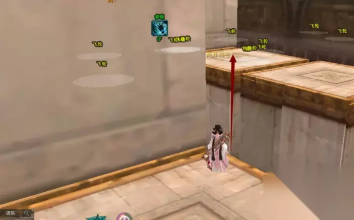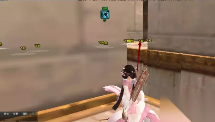 10、从缝子里钻过来之后保持前进的视角就能看见斜上方的台子,直接再跳过去,这里距离稍远,觉得不确定2段跳能不能过去的,那就保险一点扶摇加聂云。