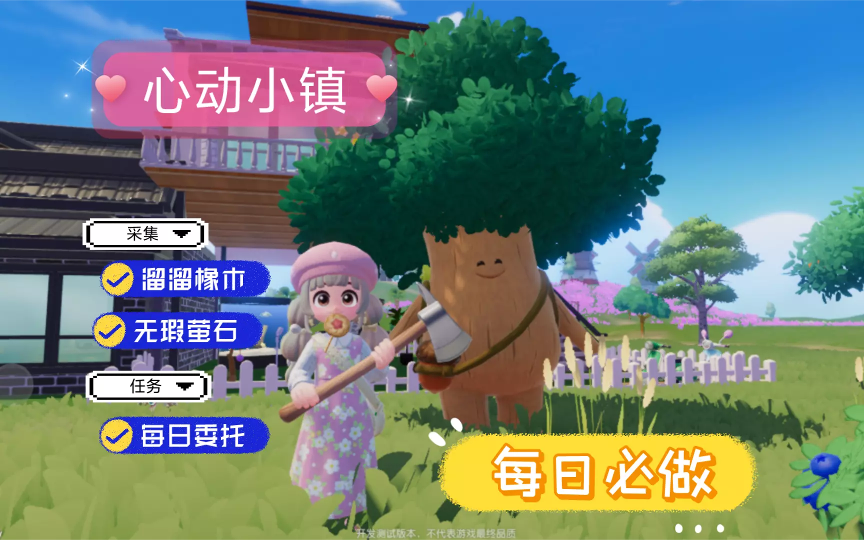 【溜溜橡木】和【无瑕萤石】每日获取有限,记得每天登录游戏后进行采集。 还有【每日居民委托】也不要忘了,奖励包括了金币、满愿星和贡献勋章,贡献勋章是升级【发展家协…