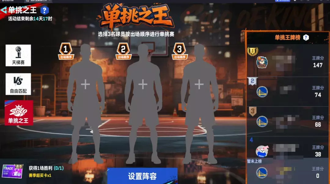 每名玩家将有10点可用选人点数,从球员名单中选择3名球员,按出场顺序进行单挑赛,三局两胜。