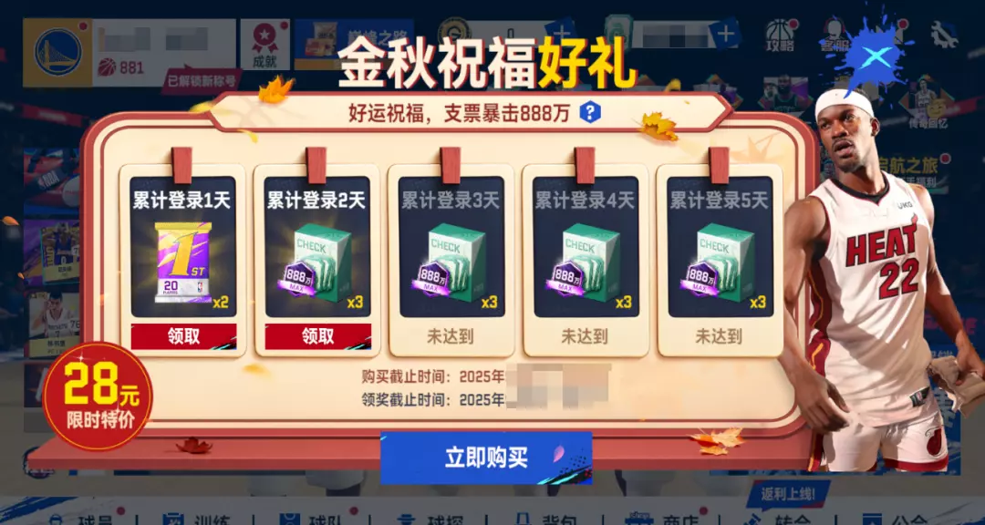 金秋送祝福,天天开好礼!购买后每日可拿支票包。