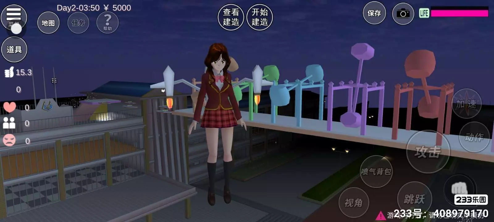 3、精彩的游戏玩法:驾驶车辆、乘坐喷气背包飞行、用魔杖战斗,甚至体验超现实的情节,如结婚生子,打破了传统校园模拟的界限
