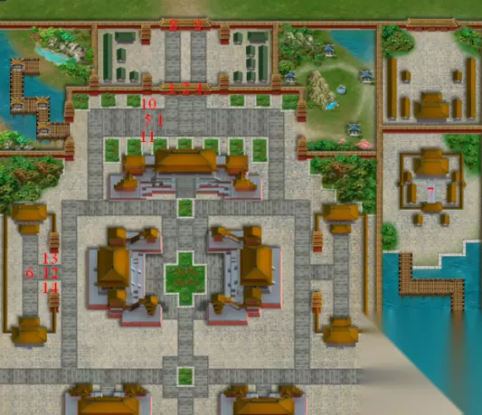 第87关 决战玄武门 终于到了大结局。本关出战如图所示。开局李建成李元吉与一些护卫与我们在玄武门对峙,尽快击杀小兵,李建成李元吉可以用步兵定身后击杀,兄弟俩带的君主套装。第一回合结束侯君集消失。在击杀太子或齐王之后的敌方回合,太子府与齐王府的援军会出现并往玄武门进攻,齐王府部队(中营)的枪兵与刺客在敌方回合自动复活,太子府部队(下营)轻骑与破甲在敌方回合自动复活。下方会有三片副将带领的部队进攻秦王府,这些部队不会复活。太子或齐王死后的两回合后,北门冯立会带兵进攻,轻骑与破甲在敌方回合自动复活。第五回合侯君集出现在右侧,击杀步兵后进入内城触发魏征出场,带领魏征逃跑。魏征与秦琼对话后魏征撤退,奖励魏征成长点,噩梦魏征有皮肤奖励特技玄门之道:控制必中。在我军推进至下营前,魏征最好呆在原地不动,因为魏征可能会被复活的小兵直接围殴。敌军数量为十人时过关。二周目过关奖励长孙无忌成长点,有皮肤额外奖励两点。 这关的敌方武将非常硬,建议优先击杀智将与弓箭手,这俩兵种不会复活。敌军小兵会自动跟随大将,建议不击杀将领。建议打法:程咬金带致盲枪令箭吸引薛万彻与谢叔方,护甲困难黄金甲噩梦乌金甲,其他人往下推进,压至小兵复活点。不过要求上方有一员猛将(最好是新月娥)出城往对方复活点压制,不然玄武门北门会被击破(噩梦难度敌将二阶套有击退)。下方秦王府建议出战张公瑾鲁明星,清完下面敌军后直接往右走去压下方复活点。秦琼去下方营寨找机会对话魏征。最后一波清兵压数量至十人过关。