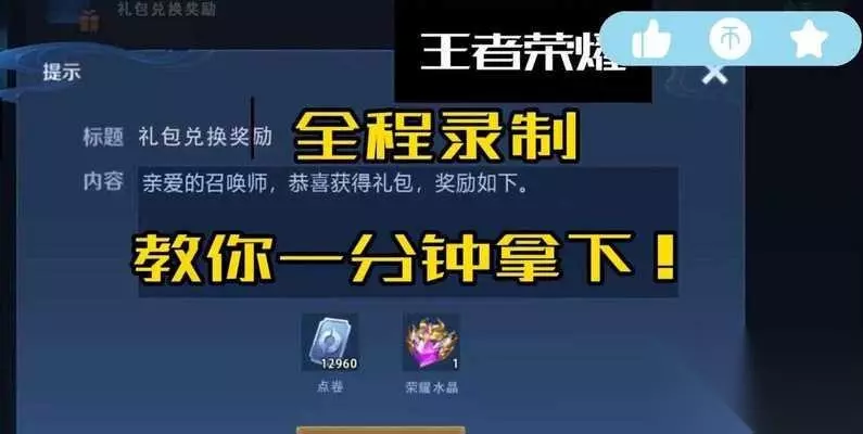 礼包的领取步骤 1.登录账号 领取礼包的第一步是确保你已经登录了王者荣耀的账号。如果是新玩家,则需要先注册账号。 2.访问活动页面 通过游戏内公告或官方平台提供的链接访问活动页面。确保活动页面是官方认证的,避免点击不明链接,造成账号安全风险。 3.查看活动规则 在领取礼包前,务必认真阅读活动规则,了解领取礼包的条件以及使用规则。有些礼包可能仅限于活动期间领取,或者需要满足一定的游戏进度。 4.完成指定任务 根据活动要求完成指定的任务,例如达到一定的游戏等级、完成特定场次的游戏对局等。 5.领取礼包码 完成任务后,通常活动页面会提供礼包码。玩家需复制礼包码或记录下来。 6.进入游戏兑换 返回王者荣耀游戏界面,找到“礼包兑换”或“活动”区域,输入礼包码即可完成兑换。