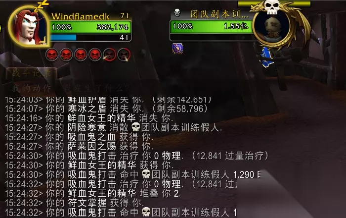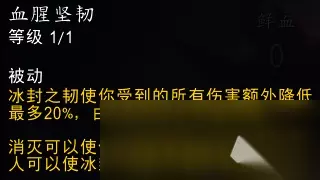 两个DK同时触发吸血光环,共获取了22%吸血。 其中巫妖之躯提供10%、自己的吸血光环提供6%、盟友的吸血光环提供6%。 所以不同DK的吸血光环可以互相叠加。 2-3-B.血腥坚韧 − 血腥坚韧 ... 天赋说明