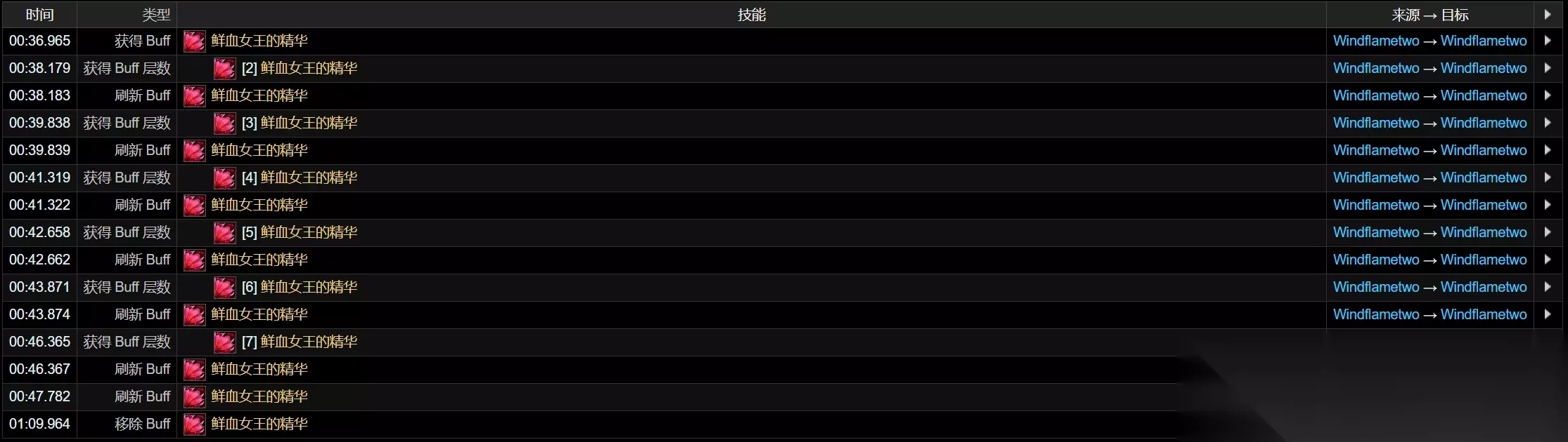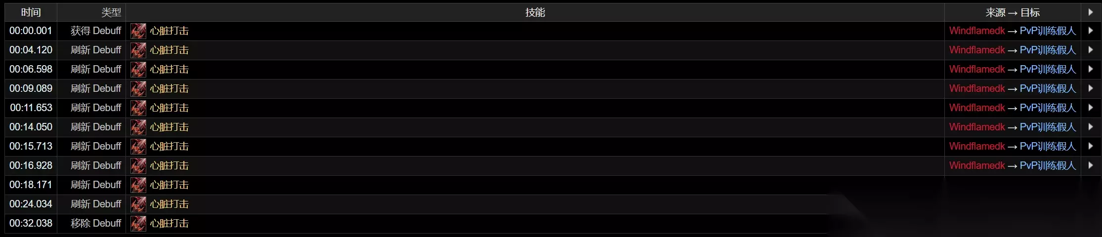 30秒至40秒只打吸血鬼打击不打心脏打击,可以看到减速debuff在34秒消失。 说明当前版本吸血鬼打击替换心脏打击后的确不再施加减速debuff。 与碎心打击的交互