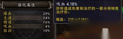 测试服光环减少20%治疗量,本次测试不含全能。 进行计算:((12841/0.8)/1.4)/382174=3.0% 萨莱茵之赐期间心脏打击图标和说明都转化为吸血鬼打击,但是回血量依然为最大血量的3%而非文字说明的5%。 在吸血鬼之血状态下该回血会受最大生命值提升和治疗效果提升的双重影响。
