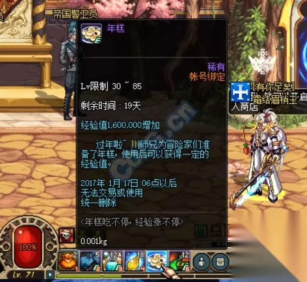 而那个12%的年糕,还是留着给85角色吃吧。 最后最后,除了67级,其他等级区间的经验全是我猜的 如果猜错了你们也不要打我 最后的最后的最后,我之前调侃的那个捡49个年糕回城,下一把只刷年糕不捡年糕的办法是行不通的,这个是根据你账号里捡起的年糕数算的,每天只能捡50个,所以就算地上还有年糕,只要你已经捡满50个就不能再捡起来了。当初我就想耍点小聪明,结果发现开发组比我聪明多了 百度搜索:233乐园网dnf活动就能第一时间到达我们的DNF活动专区!