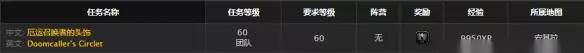 厄运召唤者套装是魔兽世界怀旧服中一套适用于术士的布甲,5件即可成型,想要获得这套装备的千万不要错过本篇文章了,一起跟小编看下这套装备中的厄运召唤者的头饰获取方法吧。 厄运召唤者的头饰 Doomcaller's Circlet ID:21337 物品等级:81 拾取后绑定 头部:布甲 是否唯一:唯一 属性 100 点护甲 +24 智力 +6 精神 +27 耐力 耐久度 60 / 60 职业:术士 需要等级 60 装备:提高所有法术和魔法效果所造成的伤害和治疗效果,最多33点。 装备:使你的法术造成致命一击的几率提高1%。 装备:使你的法术击中敌人的几率提高1%。 获得方法