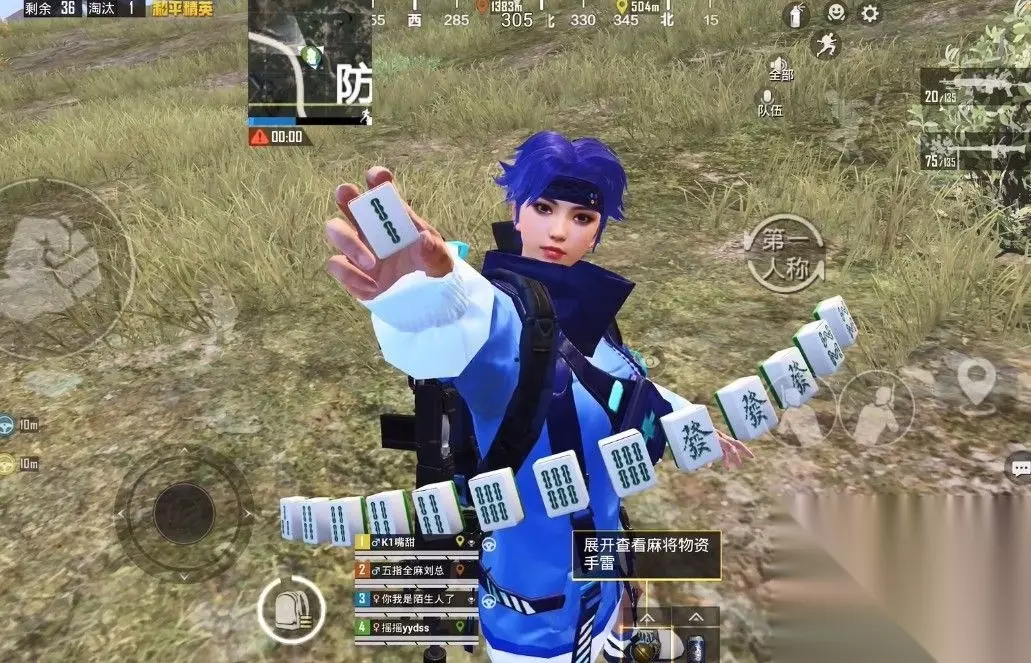 麻将模式玩法 1、首先我们选择麻将模式进入,在飞机上大家打开地图可以看到10个麻将图标,直接飞过去就能看到麻将桌了; 2、站到麻将桌的方位上之后进行互动,然后天上会掉落一些物资以及麻将牌道具;