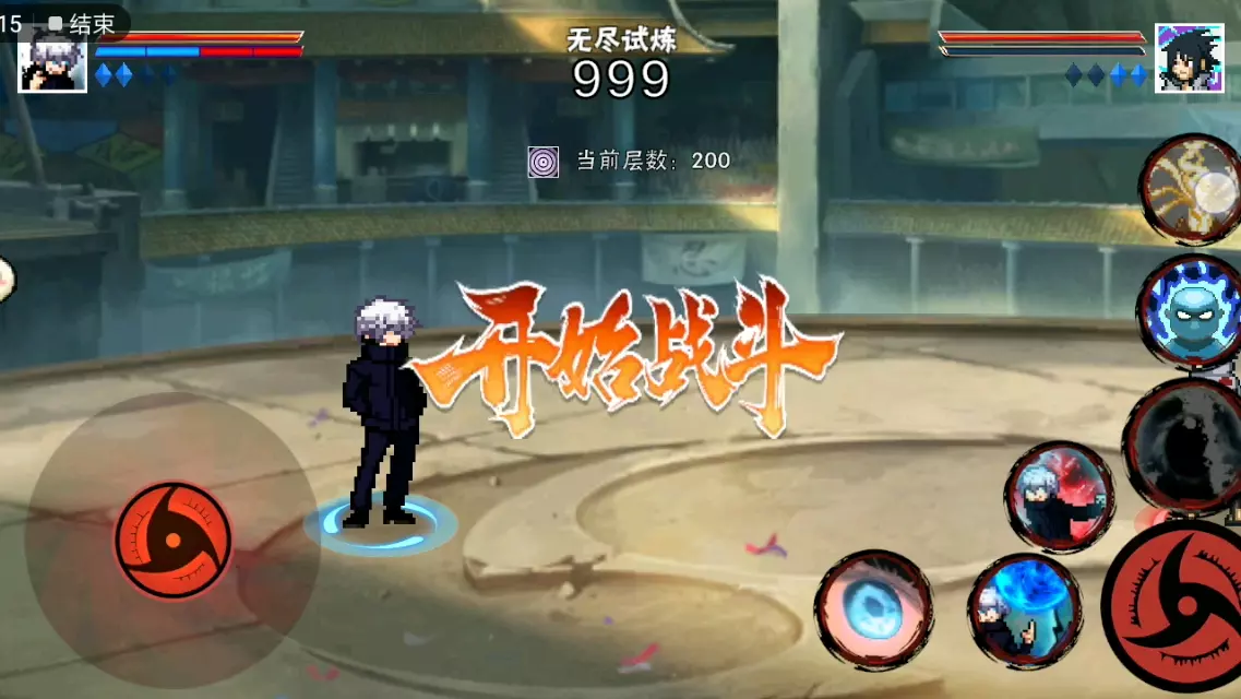 这是火影忍者同人像素格斗游戏的对战内容,展示了无尽试炼76、77层的战斗画面,玩家操控宇智波斑等忍者对战,过程中吐槽对手有陷阱、技能放空等状况,趣味十足。