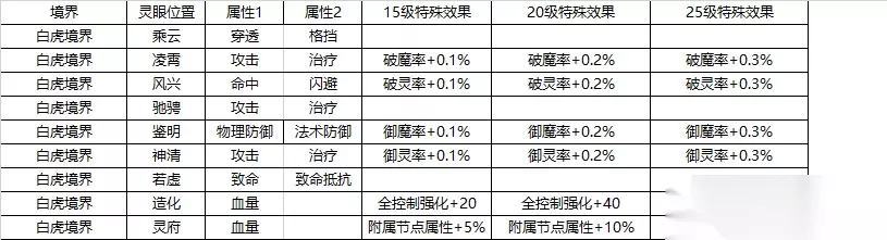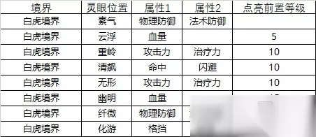 白虎页: 1.需要神格放入灵印后才可激活 2.风兴、神清、灵府需要放入金色神格,且激活和升级需要特殊道具,蕴灵露, 3.乘云、若虚、驰骋需要使用云券; 4.凌霄、鉴明、造化需要灵印处神格为紫色或者金色神格,升级。