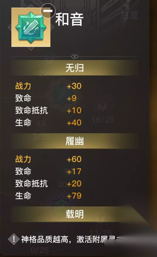 灵关处放入神格,还会有一些属性加成,金色神格可激活3种,紫色2种,蓝色1种。
