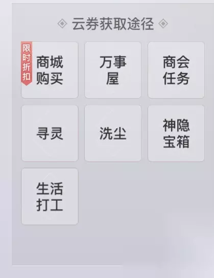 2.云券,蕴灵系统中灵印的附属灵关点击非常消耗云券,如血域,点21下的时候已经需要1000万云券了,因此这边也将云券的获取方式列上: