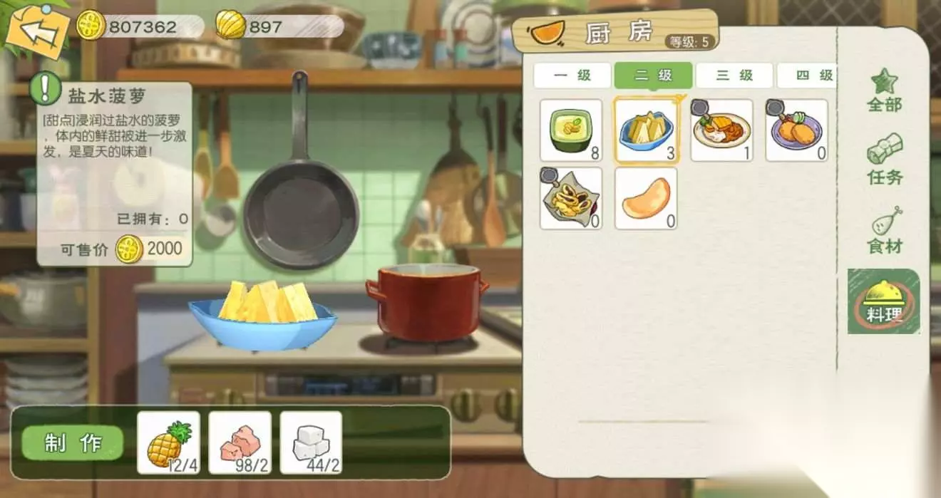盐水菠萝:食用可恢复50点体力;