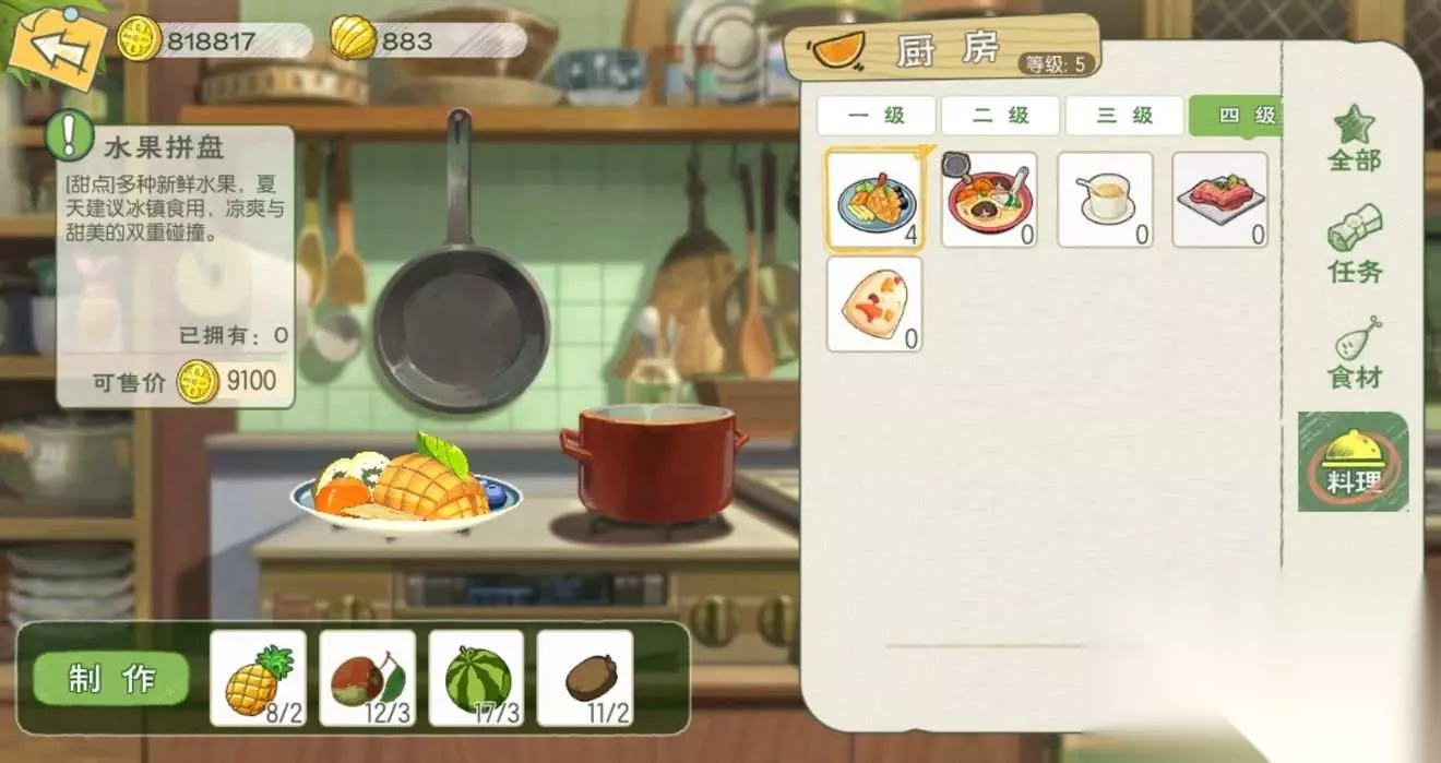 水果拼盘:食用可恢复150点体力;