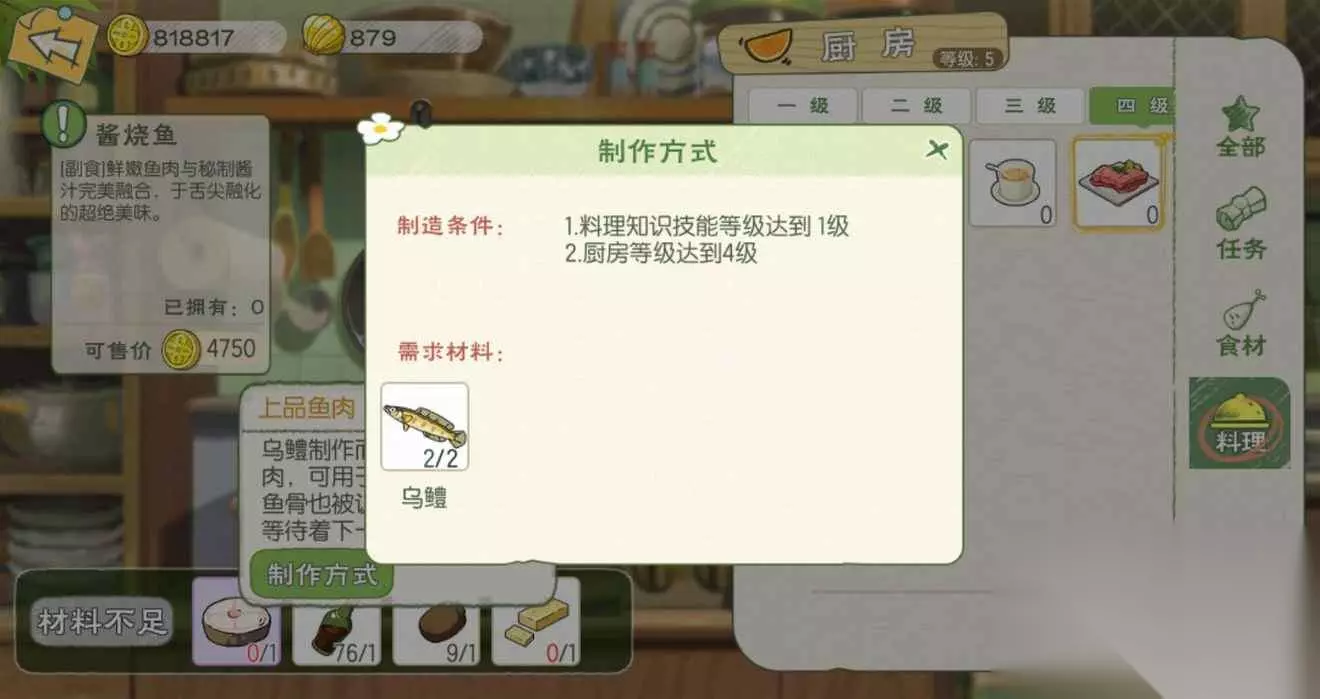 酱烧鱼:食用可恢复150点体力;