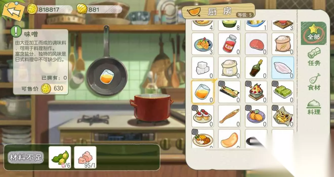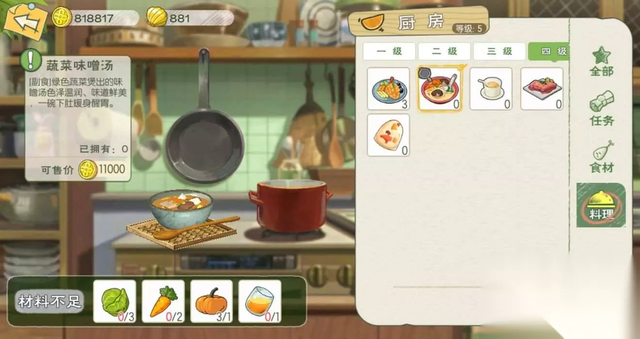 蔬菜味增汤:食用可恢复65点体力;