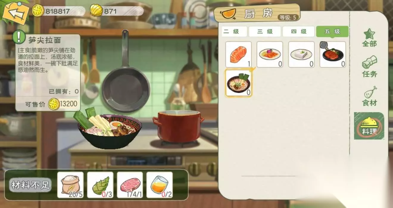 【5级厨房】 笋尖拉面:食用可恢复200点体力;