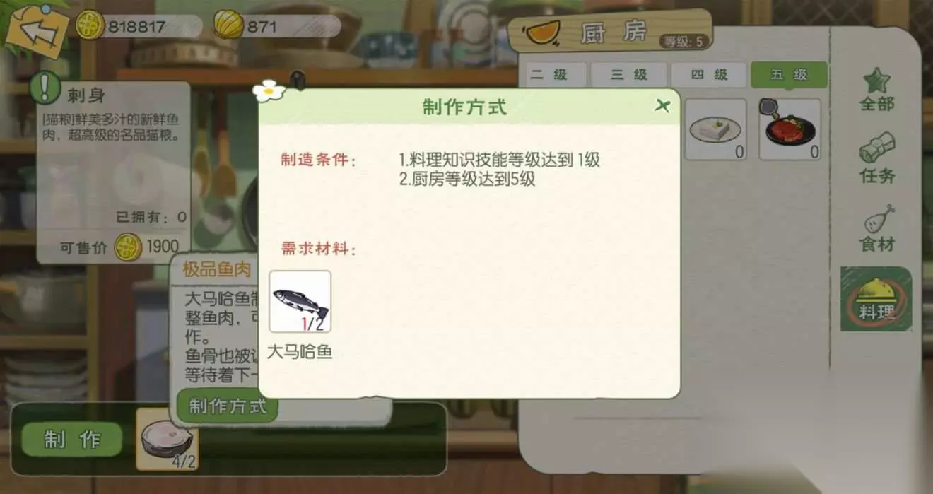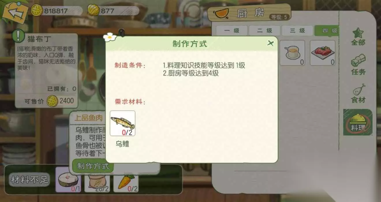 【4级厨房】 猫布丁:猫粮;
