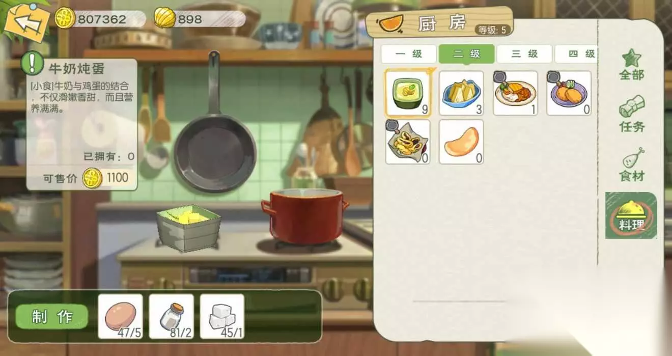 牛奶炖蛋:食用可恢复30点体力;