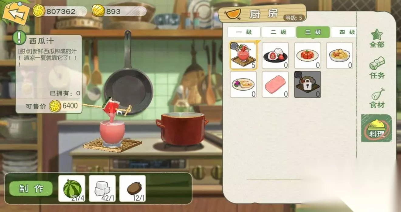 西瓜汁:食用可恢复50点体力,抵抗毒气提升10点(持续10分钟);