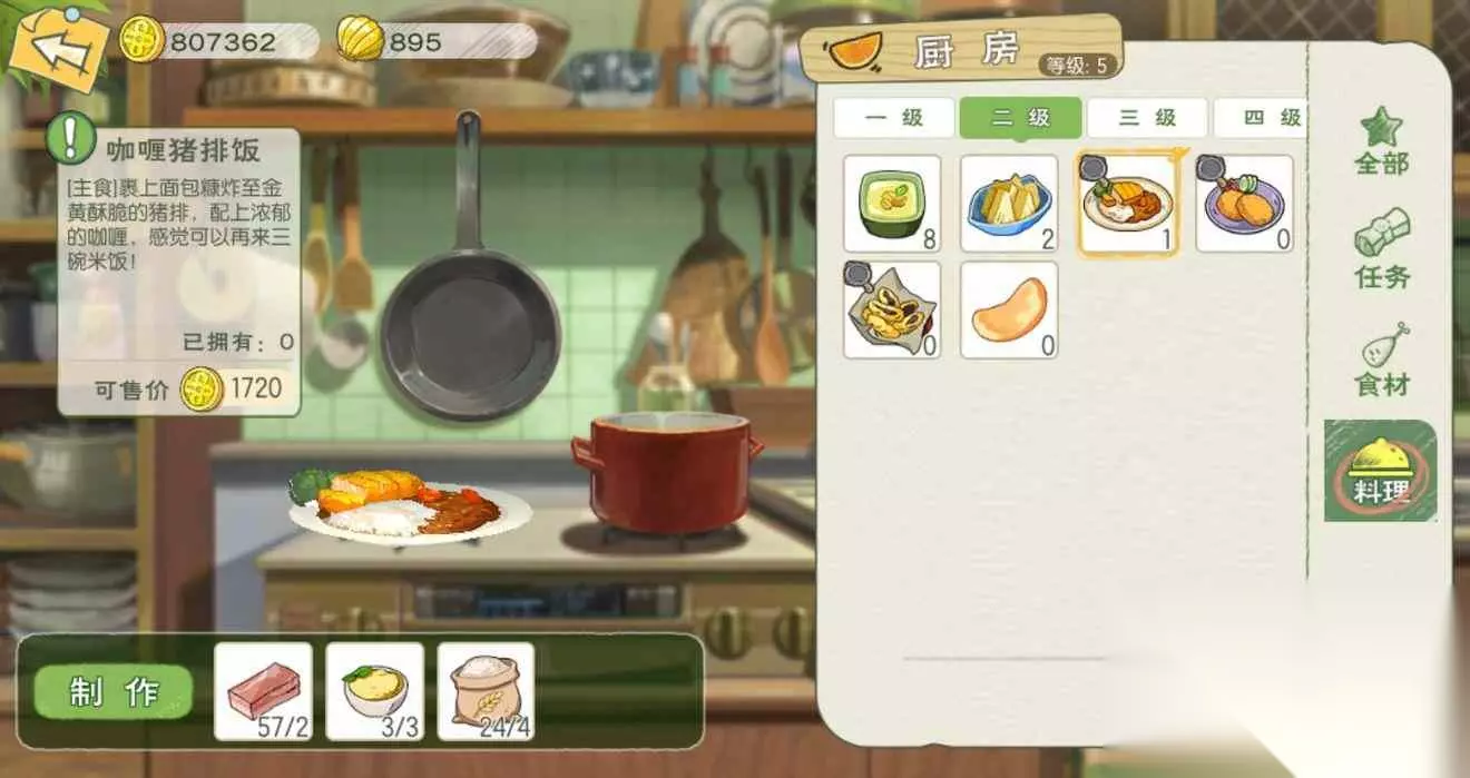 【2级厨房】 咖喱猪排饭:食用可恢复50点体力;
