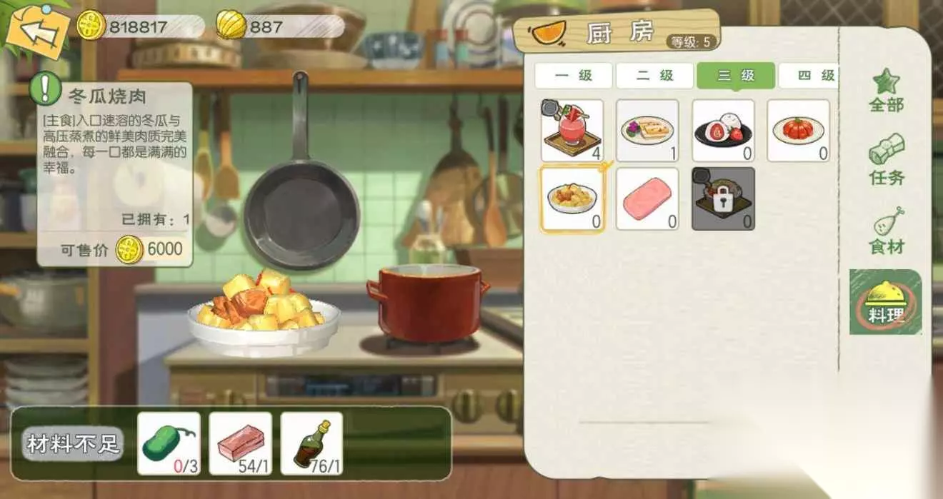 冬瓜烧肉:食用可恢复20点体力;