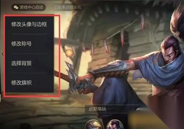 3、随后在这里可以看到修改头像和边框、修改称号、修改背景、修改旗帜等信息,就是没有修改昵称; 但是修改名字是需要改名卡的,目前国服还没有上线改名卡,相信后续玩家可以通过购买改名卡来进行修改名字。